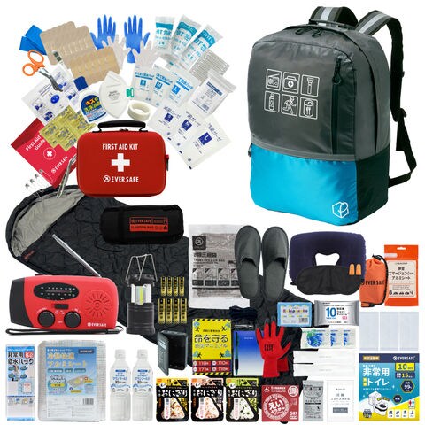 防災セット 1人用 寝袋付き 40L ビッグリュック (ブルー) L5BRNB01 防災グッズ 防災士監修 ファーストエイドキット 避難グッズ 災害対策 地震対策 トイレ 非常食 ランタン ラジオ 長期保存水 懐中電灯 警戒レベル5
