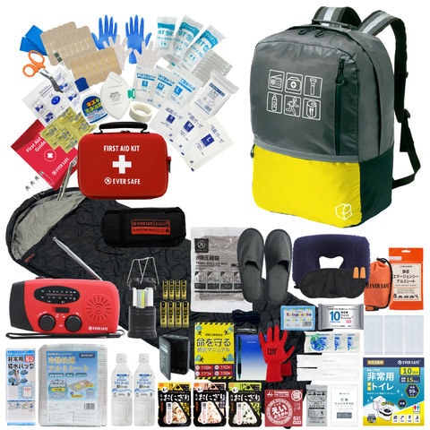 防災セット 1人用 寝袋付き 40L ビッグリュック (イエロー) L5BRNB01 防災グッズ 防災士監修 ファーストエイドキット 避難グッズ 災害対策 地震対策 トイレ 非常食 ランタン ラジオ 長期保存水 懐中電灯 警戒レベル5