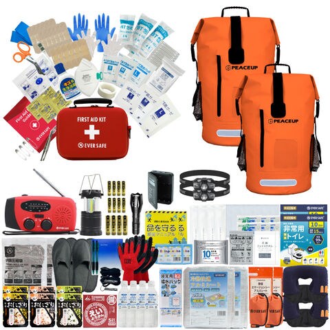 防災セット 2人用 ヘッドライト付きドライバッグ (オレンジ×オレンジ) L5DR02 防水リュック 防災グッズ 防災士監修 ファーストエイドキット トイレ 非常食 避難グッズ 水害対策 ランタン ラジオ 長期保存水 懐中電灯 警戒レベル5 EVERSAFE