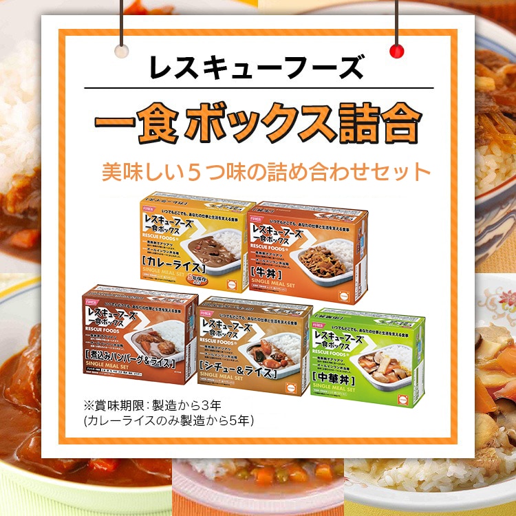 一食ボックス 5種類5食セット 非常食セット レスキューフーズ 長期保存 防災食 温かい 保存食 防災グッズ 日本災害食 簡単調理 備蓄品 非常用 レトルト ホリカフーズ