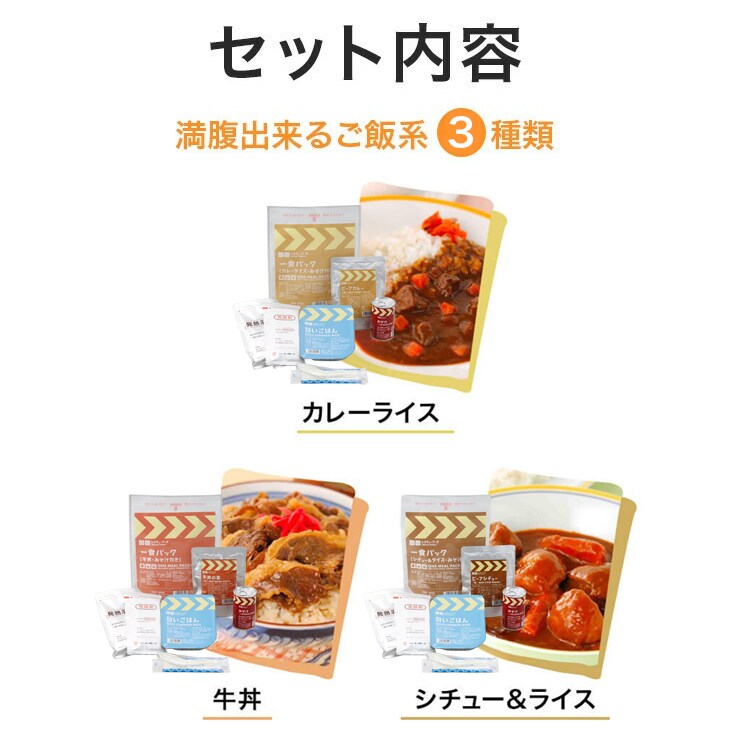 一食パック みそ汁付き 3種類3食セット カレーライス 牛丼 シチュー&ライス 非常食セット レスキューフーズ 長期保存 防災食 温かい 保存食 防災グッズ 日本災害食 簡単調理 備蓄品 非常用 レトルト ホリカフーズのレビュー