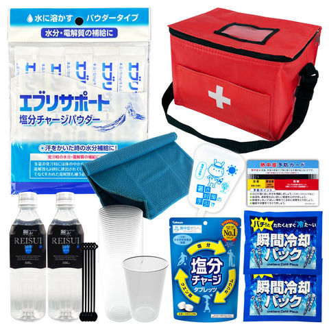 熱中症対策キット 塩分補給パウダー 25点 (レッド) 1セット 熱中症対策用品 粉末清涼飲料 暑さ対策 熱中アラーム 熱中症対策グッズ WBGT 工事現場 農作業 野外作業 アウトドア 屋外 塩分補給 塩分チャージ 持ち運び スポーツ ひんやり 暑さ指数 ATK001 PEACEUP