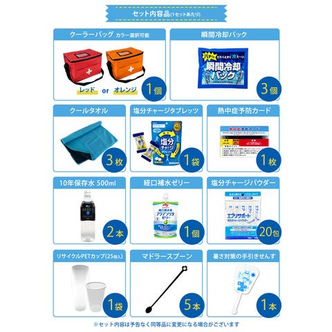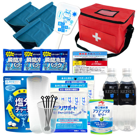 熱中症対策キット シェア 39点 (レッド) 10セット 熱中症対策用品 複数人向け 塩分補給パウダー 熱中症対策グッズ 暑さ対策 WBGT 工事現場 野外作業 アウトドア 屋外 塩分補給 塩分チャージ まとめ買い スポーツ ひんやり ATD010 PEACEUP