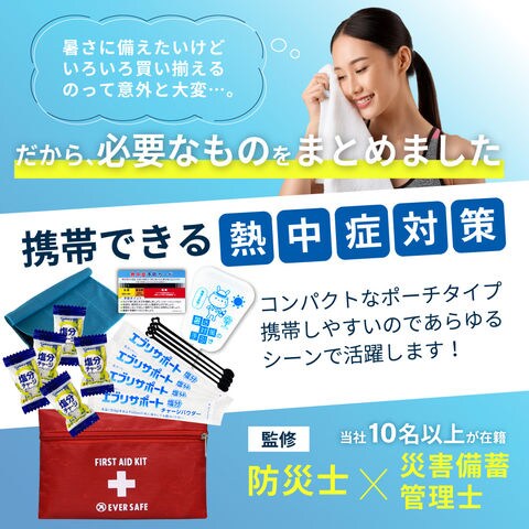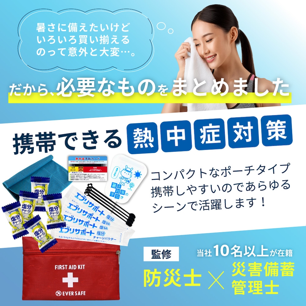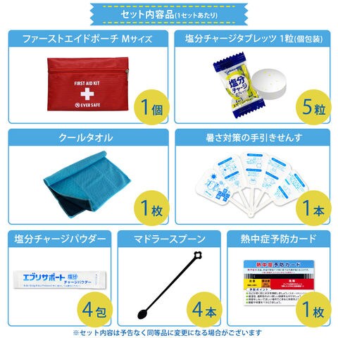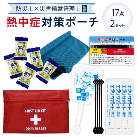 熱中症対策キット ポーチタイプ 17点 2個セット 熱中症対策用品 塩分補給パウダー 暑さ対策 熱中症対策グッズ 持ち運び 工事現場 ATP002 (メール便2個セットまで)