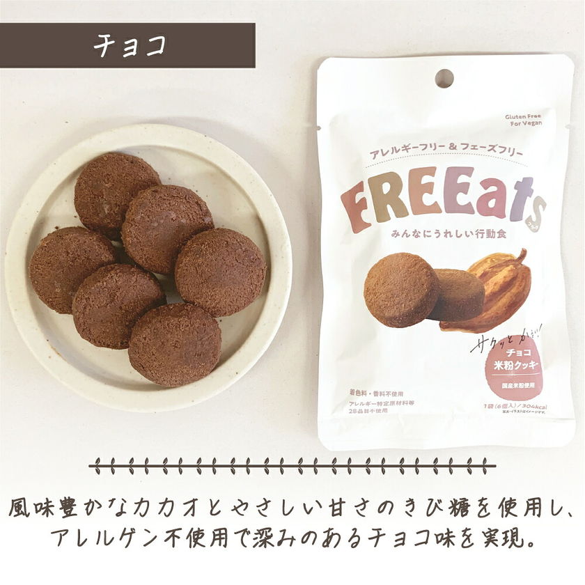 米粉クッキー 6年保存 チョコ 50袋 / ケース 防災グッズ 非常食 FREEats アレルギー対応 小麦粉不使用 グルテンフリー 米粉 着色料不使用 香料不使用 保存料不使用 動物性食品不使用 クッキー お菓子 集中力 糖分補給 おやつ お子さま 防災食 GRANDEX