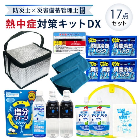 熱中症対策キットDX17点 (シルバー) 1セット 熱中症対策用品 暑さ対策 クーラーバッグ 瞬間冷却剤 ゼリー ドリンク 塩分チャージ タブレット 工事現場 農作業 経口補水液 熱中症対策グッズ コンパクト 熱中症予防カード スポーツ アウトドア 塩分補給 ATDX001 PEACEUP