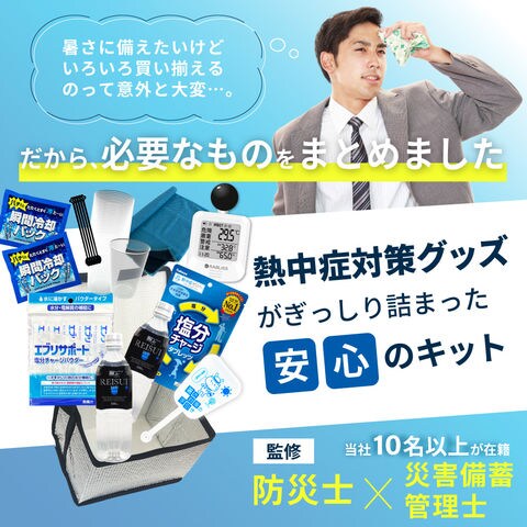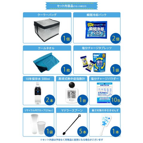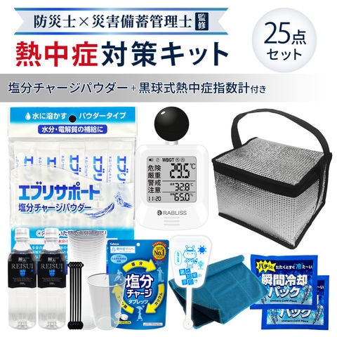熱中症対策キット 25点 1セット (シルバー) 熱中症対策用品 黒球式熱中症指数計付き 塩分補給パウダー 熱中症対策グッズ WBGT 工事現場 農作業 野外作業 アウトドア 屋外 塩分補給 塩分チャージ 持ち運び スポーツ ひんやり 暑さ指数 熱中アラーム ATK001K PEACEUP