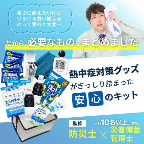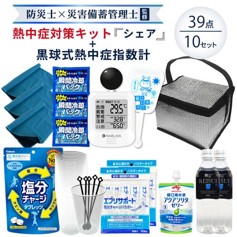 熱中症対策キット シェア 黒球式熱中症指数計付き 39点 10セット シルバー 熱中症対策用品 複数人向け 塩分補給パウダー 熱中症対策グッズ 暑さ対策 WBGT 工事現場 野外作業 アウトドア 屋外 塩分補給 塩分チャージ まとめ買い スポーツ ひんやり ATD010K PEACEUP