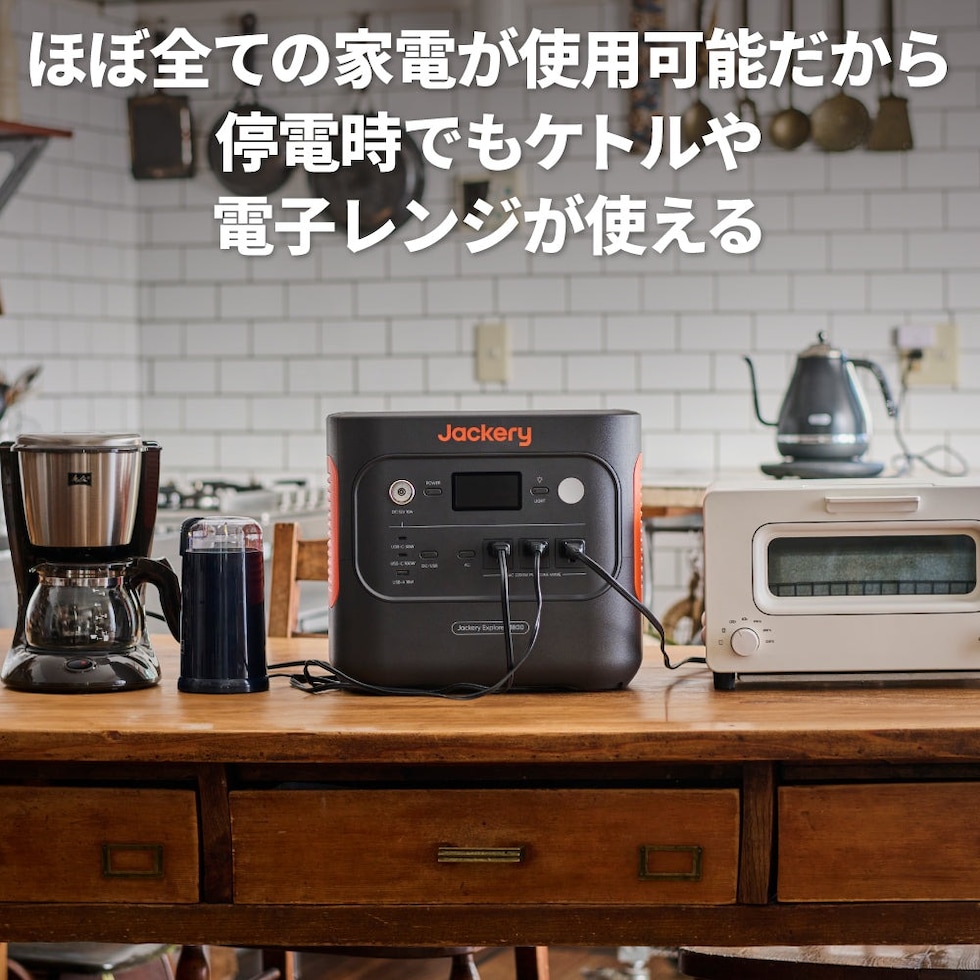 1872Whの超大容量に加えて、定格出力2200W(瞬間最大4400W)の高出力のため、ほぼすべての家電が動かせます。
