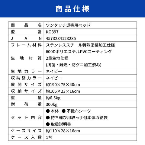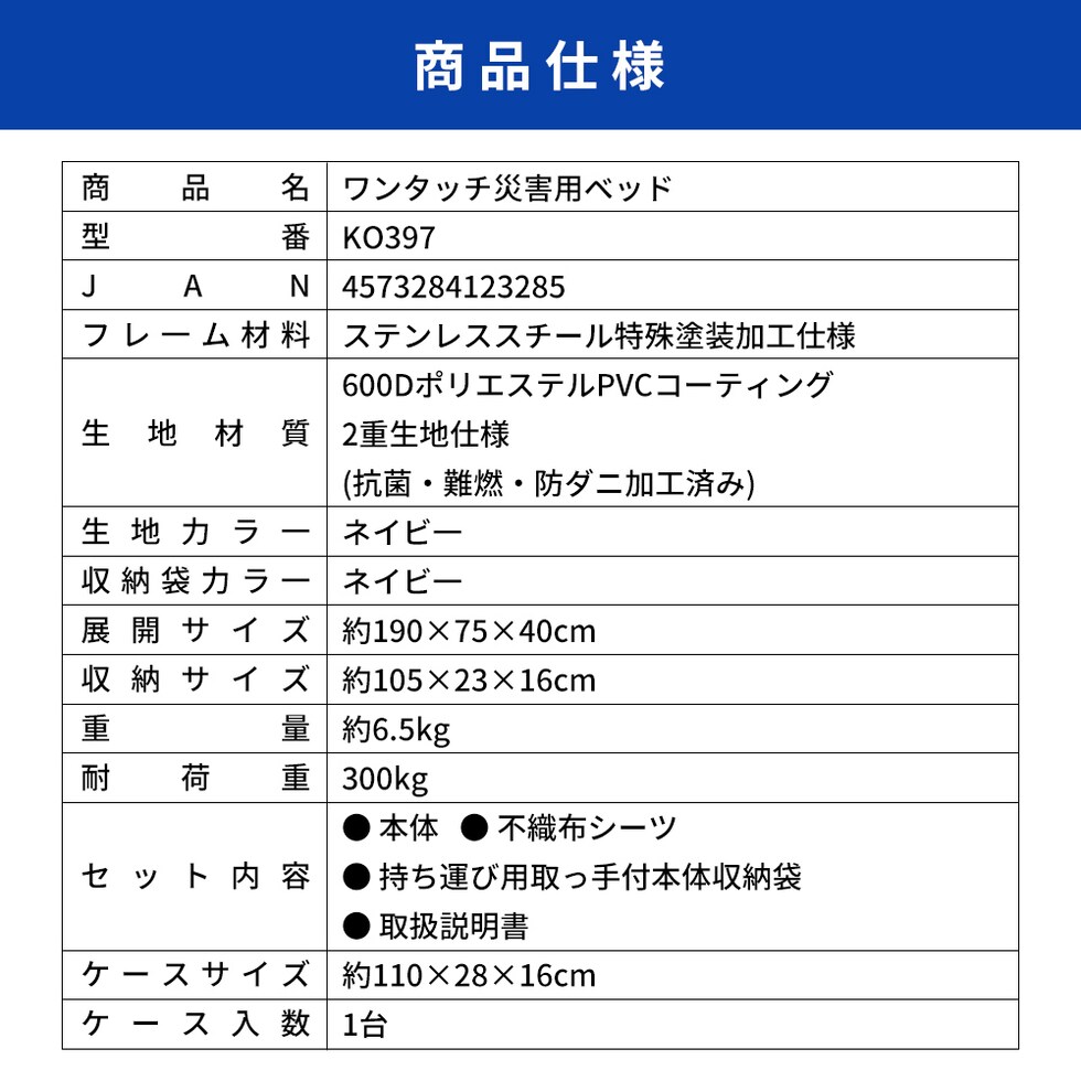 ワンタッチ災害用ベッド 不織布シーツ付き 単品 防災グッズ 簡易ベッド 耐荷重300kg 避難 地震 避難所 災害 緊急時 帰宅困難者 ワンタッチ災害用ベッド 折りたたみ 災害用ベッド コンパクト収納 ベッド 災害ベッド 組み立て 衛生的 KO397 RABLISS