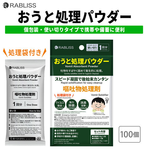 おうと処理パウダー 1回分 100個 衛生用品 嘔吐処理 凝固剤 おう吐 嘔吐 吐瀉 ウイルス 感染症対策 食中毒 処理袋 衛生 除菌 消臭 まとめ買い 防災グッズ KO405 RABLISS