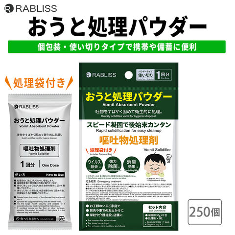 おうと処理パウダー 1回分 250個/ケース 衛生用品 嘔吐処理 凝固剤 おう吐 嘔吐 吐瀉 ウイルス 感染症対策 食中毒 処理袋 衛生 除菌 消臭 まとめ買い 防災グッズ KO405 RABLISS