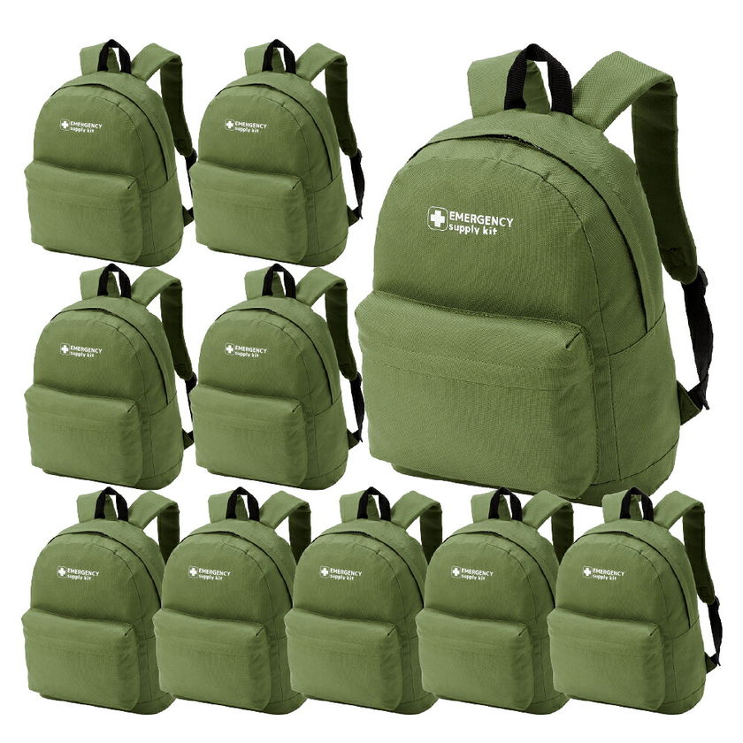防災リュック グラスグリーン まとめ買い 20L エマージェンシーリュック 10個セット 選べる9カラー PEACEUP 団体向け お部屋に合せておしゃれに災害対策 防災バッグ 防災リュックのみ 複数セット 10人分 防災用品 避難