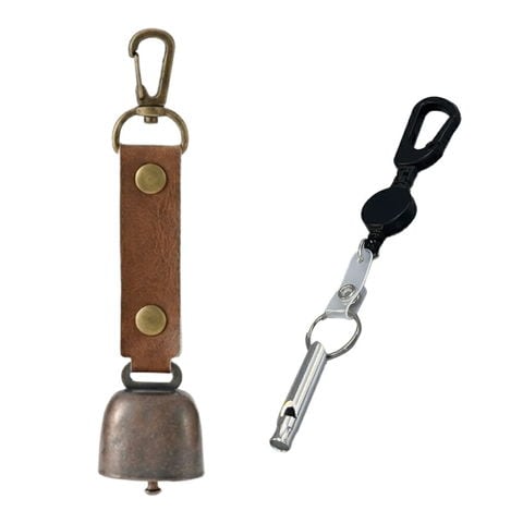 熊よけ鈴 カラビナ付きリール小 アルミホイッスル 3点セット ブラウン 1個 熊鈴 消音機能付き マグネット 磁石 消音 PUレザー 熊よけ ホイッスル 鈴 笛 登山 まとめ買い EVERSAFE (メール便3個まで)