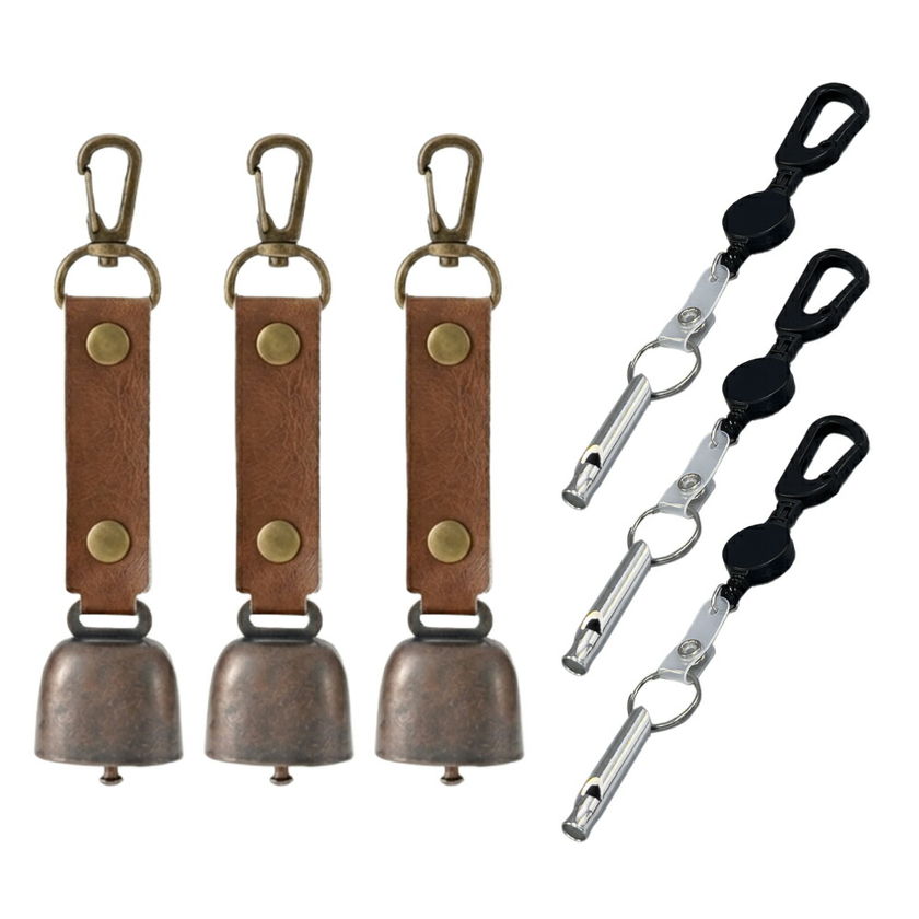 熊よけ鈴 カラビナ付きリール小 アルミホイッスル 3点 3個セット ブラウン 熊鈴 消音機能付き マグネット 磁石 消音 PUレザー 熊よけ ホイッスル 鈴 笛 登山 まとめ買い EVERSAFE (メール便1セットまで)