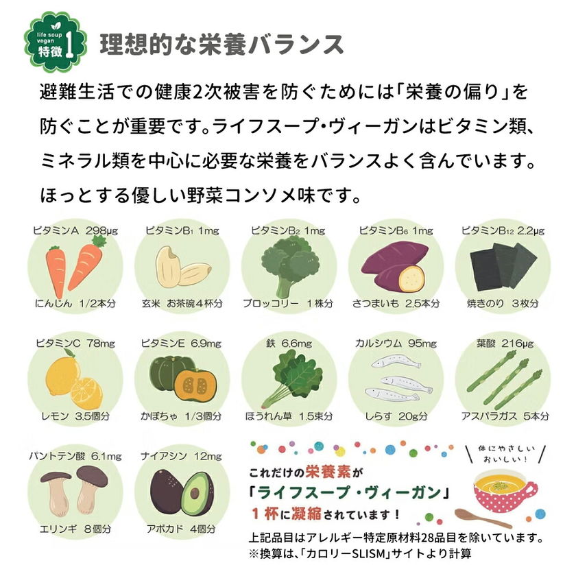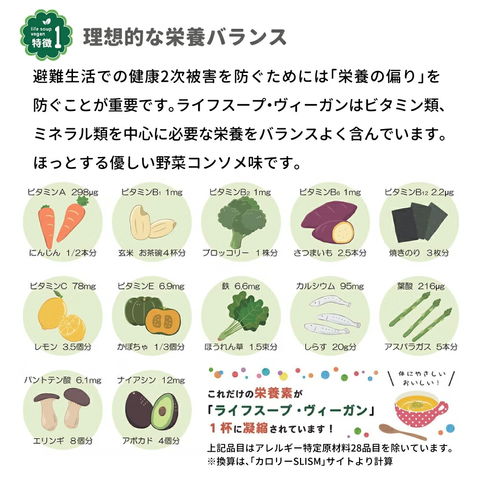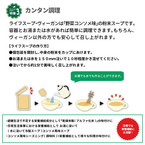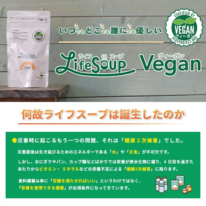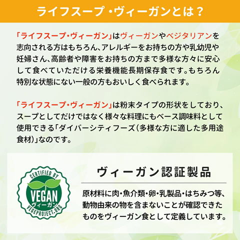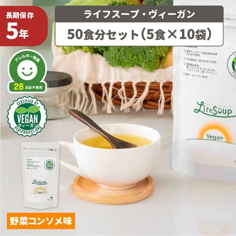 ライフスープ・ヴィーガン 野菜コンソメ味 5年保存 50食 非常食 アレルギー対応 vegan ビーガン 粉末 保存食 長期保存 野菜スープ 防災 備蓄 妊婦 高齢者 子供 ベジタルアドバンス