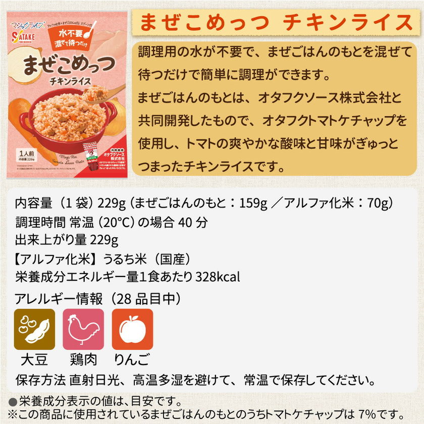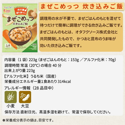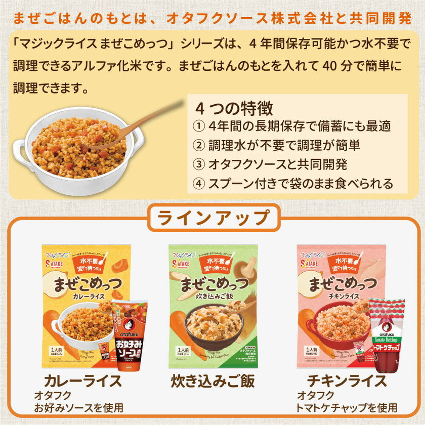 まぜこめっつ 4年保存 炊き込みご飯 20食セット/箱 非常食 防災食 まとめ買い 非常用食品 ご飯 ごはん 御飯 お米 アルファ米 ライス rice アルファ化米 レトルトパウチ サタケ (メール便2食まで)