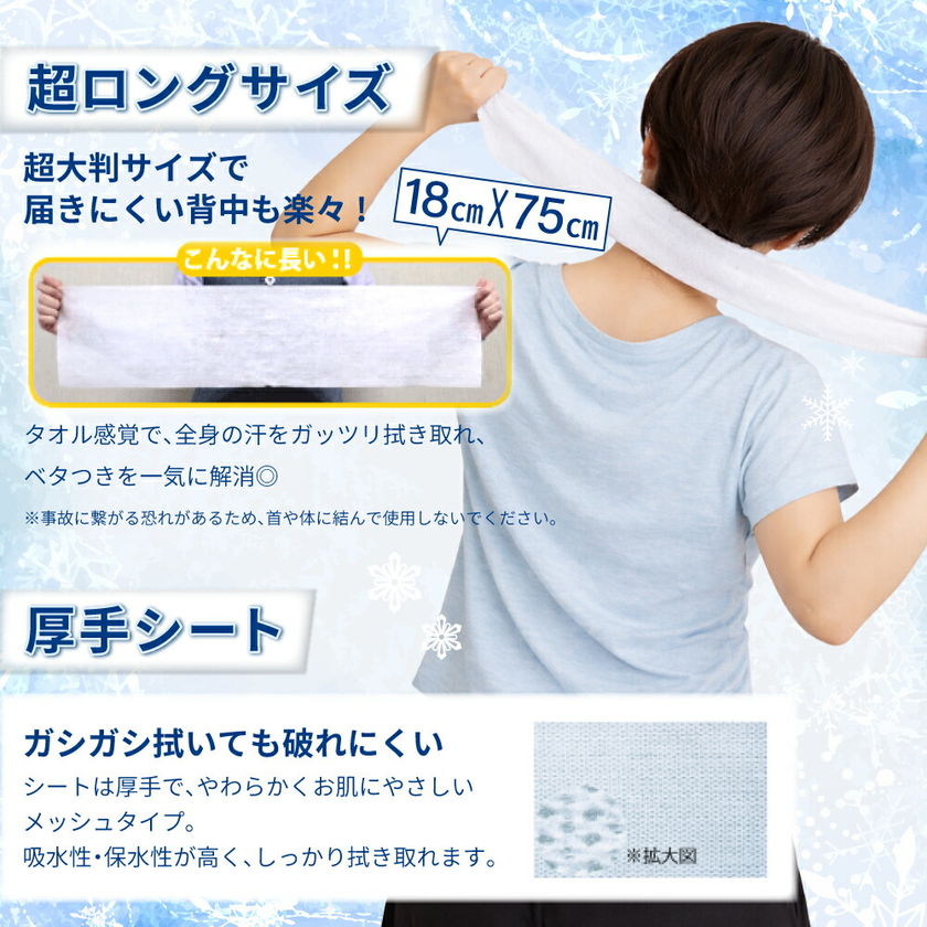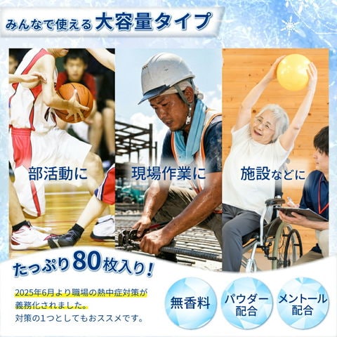 極冷 超ロングシート 6個 汗拭きシート 冷感タオル 熱中症対策 使い捨て 大容量 80枚入り 大判 無香料 ノンアルコール パウダー配合 メントール配合 厚手シート 部活 工事現場 アウトドア 暑さ対策 防災グッズ クールタオル PEACEUP
