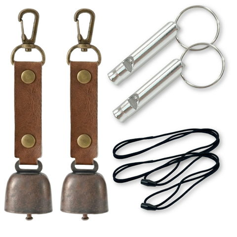 熊よけ鈴 アルミホイッスル 安全ネックストラップ 3点 2個セット ブラウン 熊鈴 熊対策グッズ 消音機能付き マグネット ホイッスル 笛 ネックストラップ まとめ買い EVERSAFE (メール便1セットまで可)