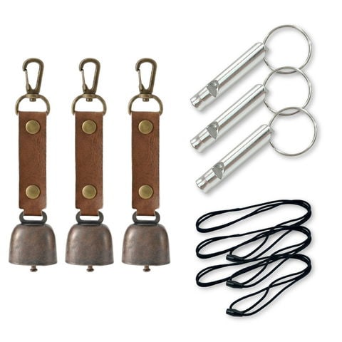 熊よけ鈴 アルミホイッスル 安全ネックストラップ 3点 3個セット ブラウン 熊鈴 熊対策グッズ 消音機能付き マグネット ホイッスル 笛 ネックストラップ まとめ買い EVERSAFE (メール便1セットまで可)
