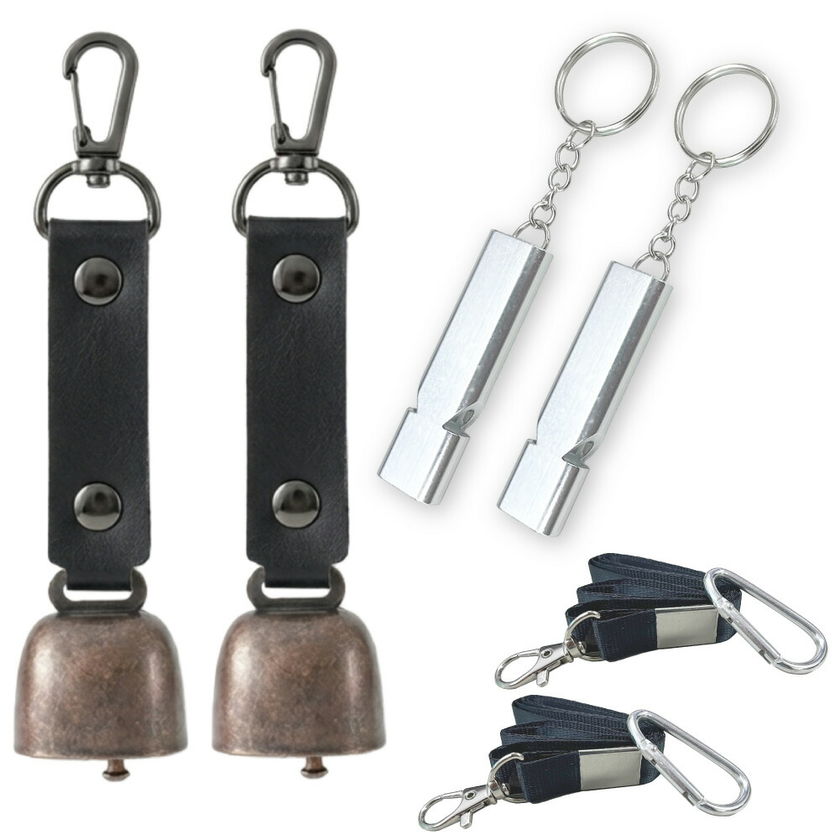 熊よけ鈴 防災士推奨 アルミホイッスル 大音量120db 2点 鈴:ブラック×笛:シルバー 2個セット 熊鈴 熊対策 消音機能付き マグネット ホイッスル 笛 まとめ買い EVERSAFE (メール便1セットまで可)