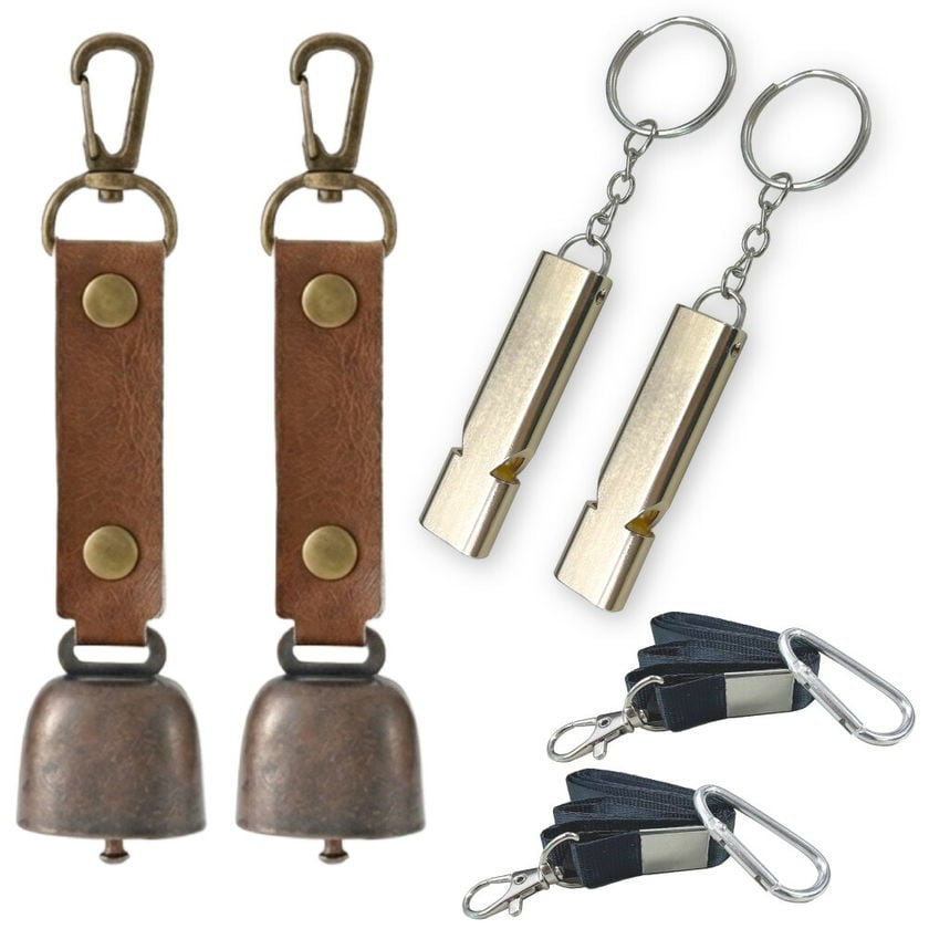 熊よけ鈴 防災士推奨 アルミホイッスル 大音量120db 2点 鈴:ブラウン×笛:ゴールド 2個セット 熊鈴 熊対策 消音機能付き マグネット ホイッスル 笛 まとめ買い EVERSAFE (メール便1セットまで可)