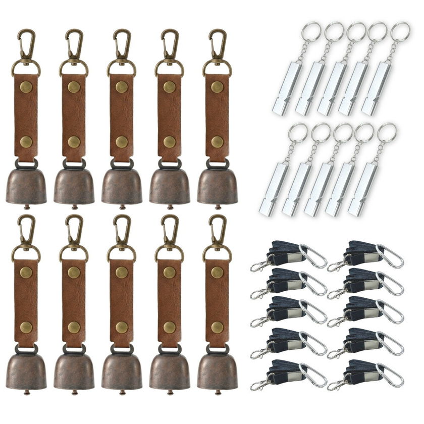 熊よけ鈴 防災士推奨 アルミホイッスル 大音量120db 2点セット 鈴:ブラウン×笛:シルバー 10個 熊鈴 熊対策 消音機能付き マグネット ホイッスル 笛 まとめ買い EVERSAFE