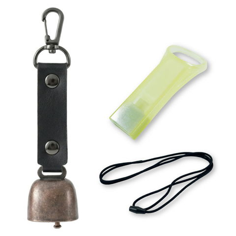 熊よけ鈴 蓄光 エマージェンシーホイッスル 安全ネックストラップ 3点セット ブラック 1個 熊鈴 熊対策グッズ 消音機能 マグネット ホイッスル ストラップ まとめ買い EVERSAFE (メール便3個まで)