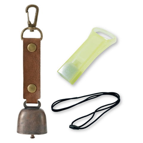 熊よけ鈴 蓄光 エマージェンシーホイッスル 安全ネックストラップ 3点セット ブラウン 1個 熊鈴 熊対策グッズ 消音機能 マグネット ホイッスル ストラップ まとめ買い EVERSAFE (メール便3個まで)