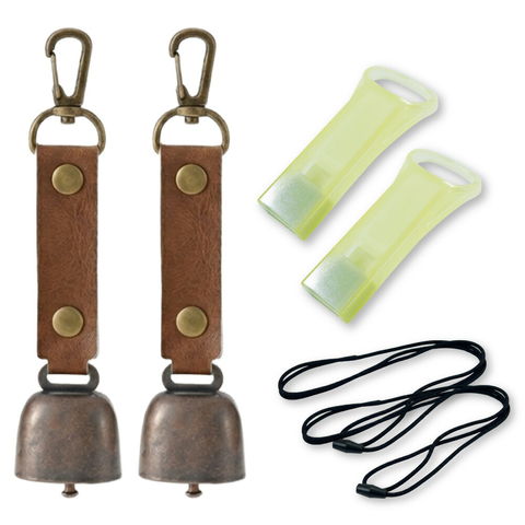 熊よけ鈴 蓄光 エマージェンシーホイッスル 安全ネックストラップ 3点 ブラウン 2個セット 熊鈴 熊対策グッズ 消音機能 マグネット ホイッスル ストラップ まとめ買い EVERSAFE (メール便1セットまで)