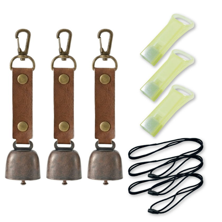 熊よけ鈴 蓄光 エマージェンシーホイッスル 安全ネックストラップ 3点 ブラウン 3個セット 熊鈴 熊対策グッズ 消音機能 マグネット ホイッスル ストラップ まとめ買い EVERSAFE (メール便1セットまで)