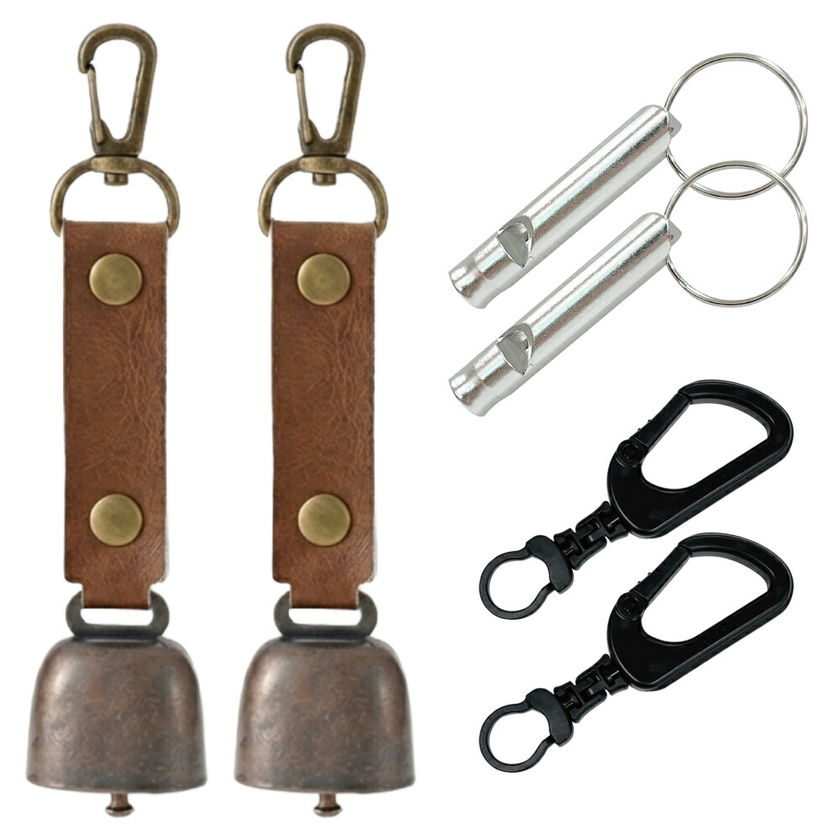 熊よけ鈴 アルミホイッスル カラビナリング付き 3点 ブラウン 2個セット 熊鈴 消音機能付き マグネット 磁石 カラビナ 消音 PUレザー 熊よけ 対策 鈴 笛 緊急ホイッスル まとめ買い EVERSAFE (メール便1セットまで)