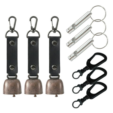 熊よけ鈴 アルミホイッスル カラビナリング付き 3点 ブラック 3個セット 熊鈴 消音機能付き マグネット 磁石 カラビナ 消音 PUレザー 熊よけ 対策 鈴 笛 緊急ホイッスル まとめ買い EVERSAFE (メール便1セットまで)