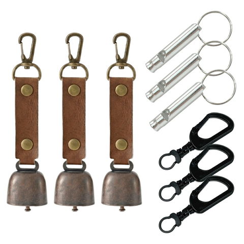 熊よけ鈴 アルミホイッスル カラビナリング付き 3点 ブラウン 3個セット 熊鈴 消音機能付き マグネット 磁石 カラビナ 消音 PUレザー 熊よけ 対策 鈴 笛 緊急ホイッスル まとめ買い EVERSAFE (メール便1セットまで)