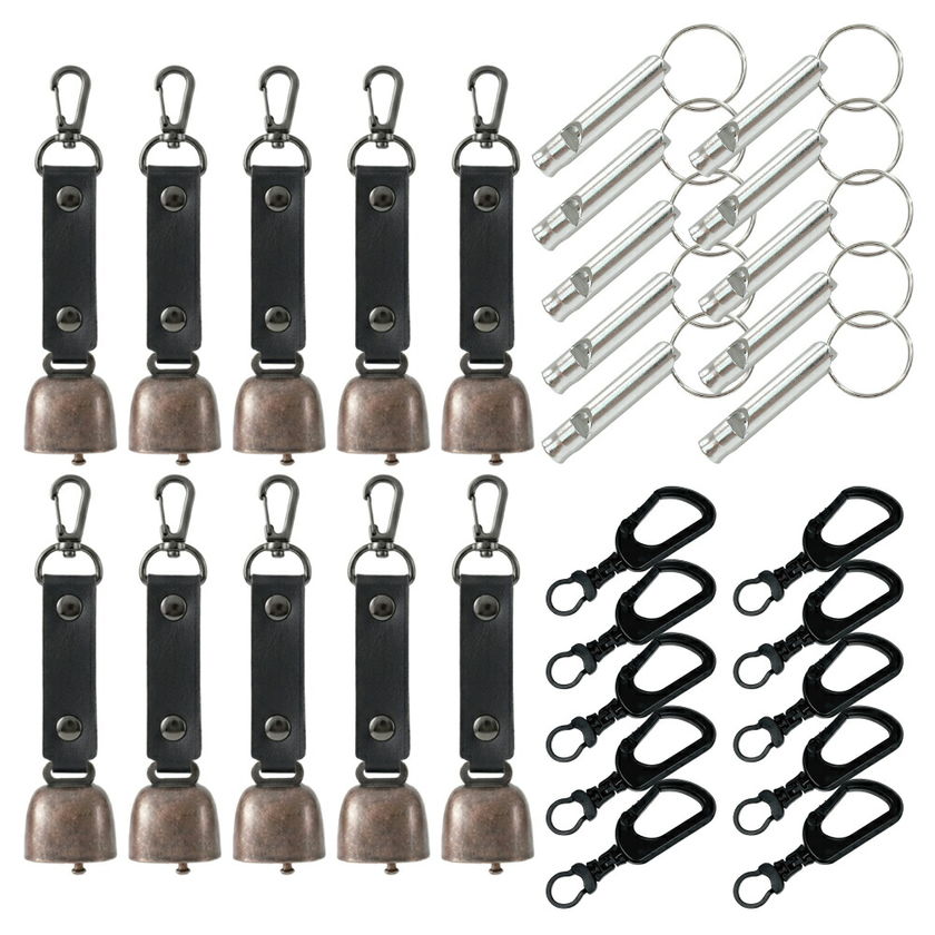 熊よけ鈴 アルミホイッスル カラビナリング付き 3点セット ブラック 10個 熊鈴 消音機能付き マグネット 磁石 カラビナ 消音 PUレザー 熊よけ 対策 鈴 笛 緊急ホイッスル まとめ買い EVERSAFE