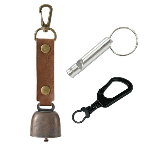 熊よけ鈴 アルミホイッスル カラビナリング付き 3点セット ブラウン 100個 熊鈴 消音機能付き マグネット 磁石 カラビナ 消音 PUレザー 熊よけ 対策 鈴 笛 緊急ホイッスル まとめ買い EVERSAFE