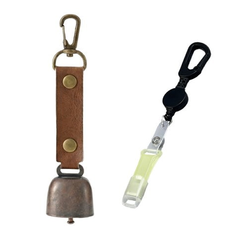 熊よけ鈴 カラビナ付きリール小 蓄光ホイッスル キャップ 4点セット ブラウン 1個 熊鈴 消音機能付き マグネット 消音 PUレザー 熊よけ ホイッスル 鈴 笛 登山 まとめ買い EVERSAFE (メール便3個まで)