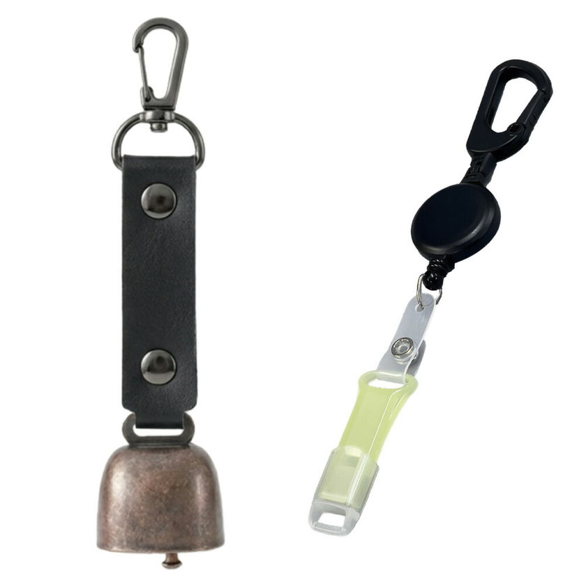 熊よけ鈴 カラビナ付きリール大 蓄光ホイッスル キャップ 4点セット ブラック 1個 熊鈴 熊対策 消音機能付き マグネット ホイッスル リール大 キャップ まとめ買い EVERSAFE (メール便3個まで)