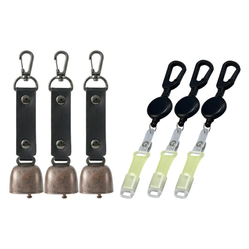 熊よけ鈴 カラビナ付きリール大 蓄光ホイッスル キャップ 4点 ブラック 3個セット 熊鈴 熊対策 消音機能付き マグネット ホイッスル リール大 キャップ まとめ買い EVERSAFE (メール便1セットまで)