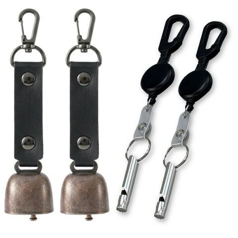 熊よけ鈴 アルミホイッスル カラビナ付きリール大 3点 ブラック 2個セット 熊鈴 熊対策 消音機能付き マグネット ホイッスル 笛 リール大 まとめ買い EVERSAFE (メール便1セットまで)