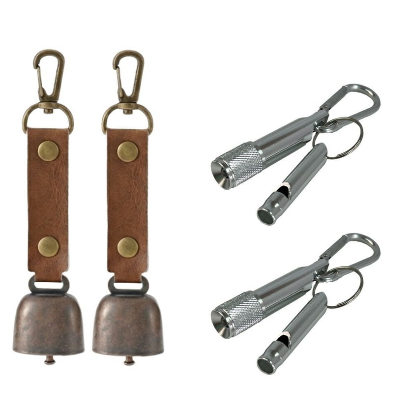 熊よけ鈴 カラビナ付 ミニアルミLEDライト ホイッスル 3点 ブラウン 2個セット 熊鈴 熊対策 消音機能付き マグネット 懐中電灯 ホイッスル 笛 まとめ買い EVERSAFE (メール便1セットまで)
