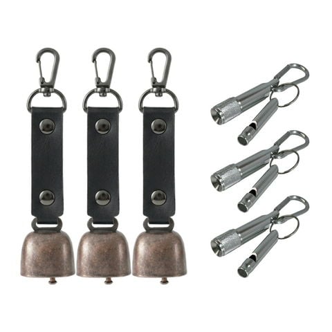 熊よけ鈴 カラビナ付 ミニアルミLEDライト ホイッスル 3点 ブラック 3個セット 熊鈴 熊対策 消音機能付き マグネット 懐中電灯 ホイッスル 笛 まとめ買い EVERSAFE (メール便1セットまで)
