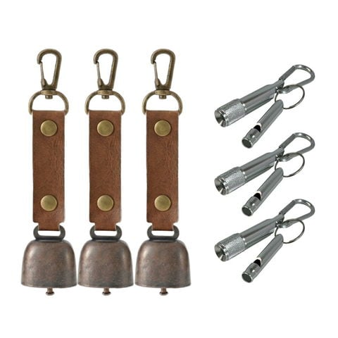 熊よけ鈴 カラビナ付 ミニアルミLEDライト ホイッスル 3点 ブラウン 3個セット 熊鈴 熊対策 消音機能付き マグネット 懐中電灯 ホイッスル 笛 まとめ買い EVERSAFE (メール便1セットまで)