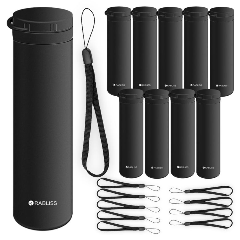 冷温スティックボトル ブラック 10本セット 熱中症対策用品 オールシーズン 3WAY ストラップ付き 冷温ボトル 企業 団体用 セット販売 冷却グッズ 湯たんぽ アイスパック スリムボトル 自治体 法人向け まとめ買い KO426 RABLISS