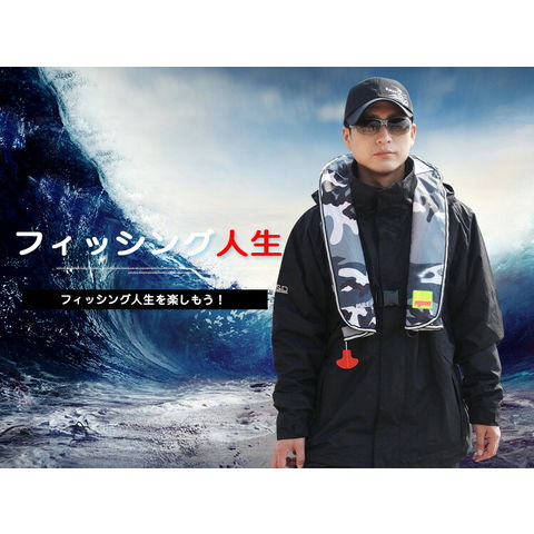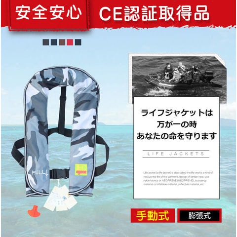 ライフジャケット 迷彩グレー ベストタイプ(手動膨張式)【全11色】男女兼用フリーサイズ CE規格 安全規格取得品【EYSON 正規代理店】 救命胴衣 ライフジャケット ライフベスト フリーサイズ フィッシング 夜釣り 海水浴