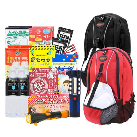 ヘルメット付迅速避難防災セット 2人用 (ブラック、レッド一つずつ) 52点 レスキュー隊仕様リュック 防水LED多機能ライト 緊急脱出ハンマー 防災グッズ セット 非常用 地震 震災 対策 家族 二人用 非常持ち出し袋 防災用品 災害グッズのレビュー