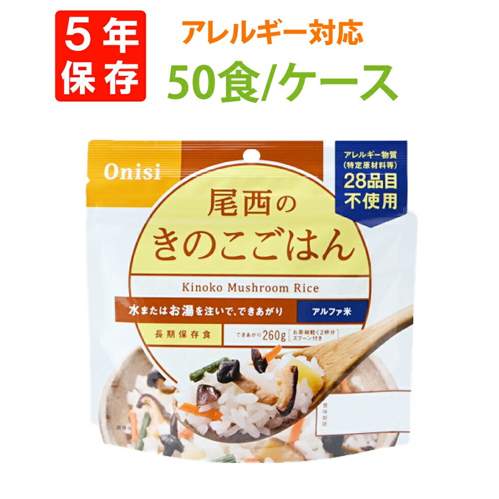 尾西食品 アルファ米「きのこごはん 50食セット」5年保存食 非常食 アレルギー物質(特定原材料等)28品目不使用 きのこご飯 アルファー米 尾西 アルファ化米 お米 ごはん ライス 非常用 災害用 保存食セット 防災セット