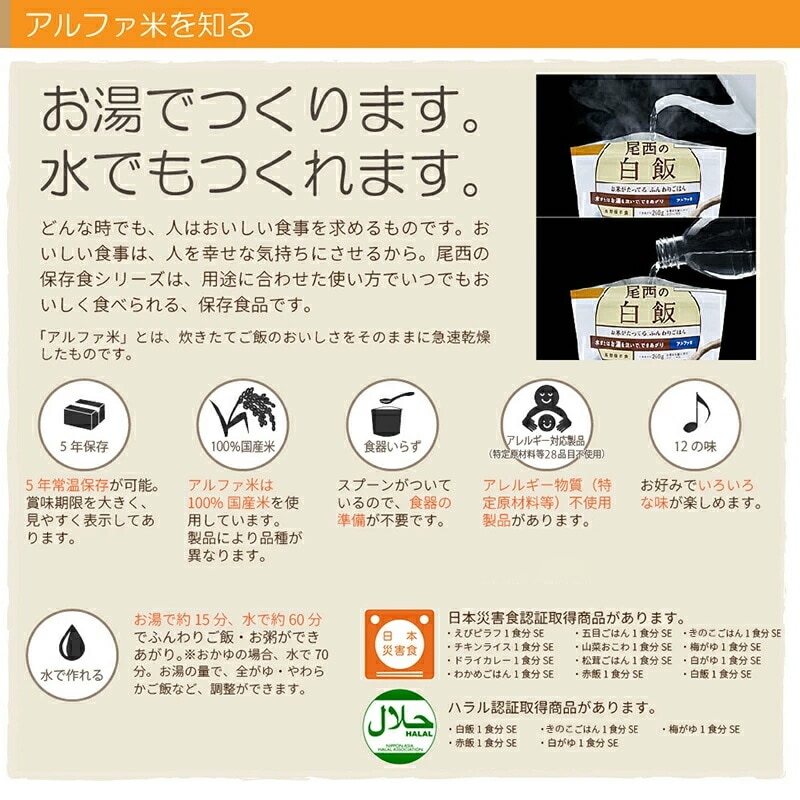 尾西食品 アルファ米「きのこごはん 50食セット」5年保存食 非常食 アレルギー物質(特定原材料等)28品目不使用 きのこご飯 アルファー米 尾西 アルファ化米 お米 ごはん ライス 非常用 災害用 保存食セット 防災セットのレビュー