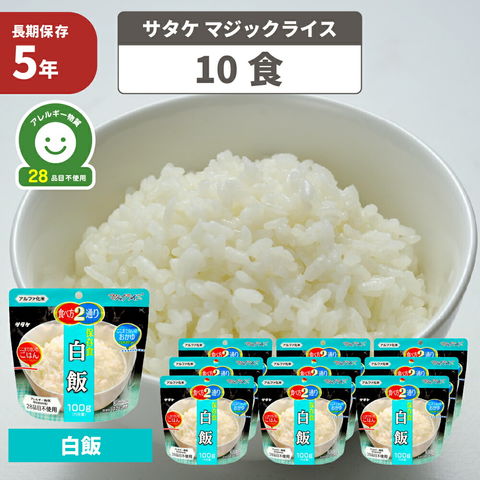 非常食セット アルファ米 白飯 「 10食セット 」 白米 サタケ マジックライス 5年保存 国産うるち米 保存食 防災食 お米 ご飯 アルファー米 保存食セット 防災セット 防災グッズ 防災用品 非常用備蓄品 帰宅困難者対策