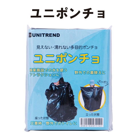 【メール便OK(12個まで)】簡易ポンチョ トイレポンチョ ユニポンチョ ブラック 非常用トイレと併用して安心(簡易トイレ 非常用トイレ 仮設トイレ 災害時 防災グッズ 防災セット 非常持ち出し袋 避難セット 組立トイレ